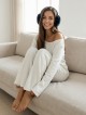 Le haut ample à épaule tombante et le pantalon à taille ajustable créent une silhouette féminine et moderne, parfaite pour des moments de détente à la maison ou pour des journées décontractées à l’extérieur.
