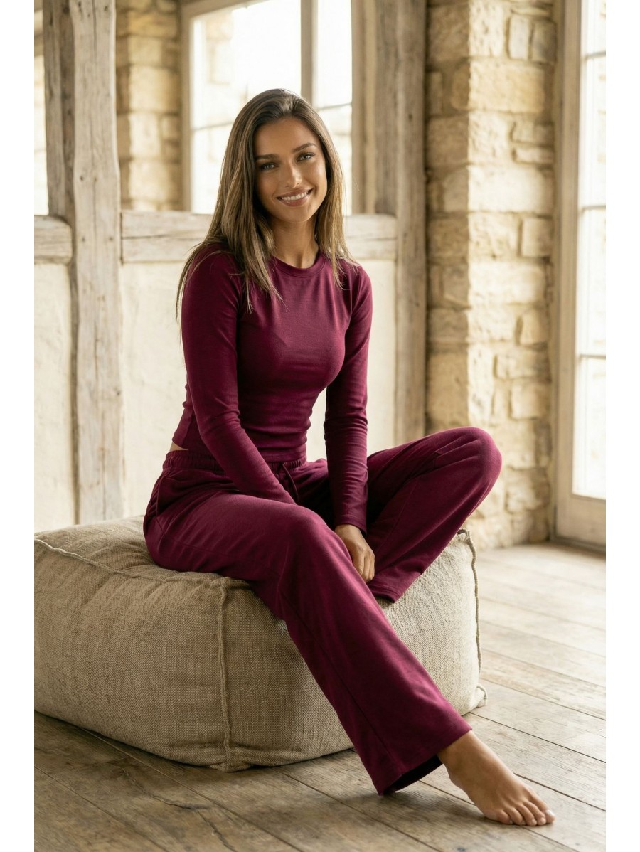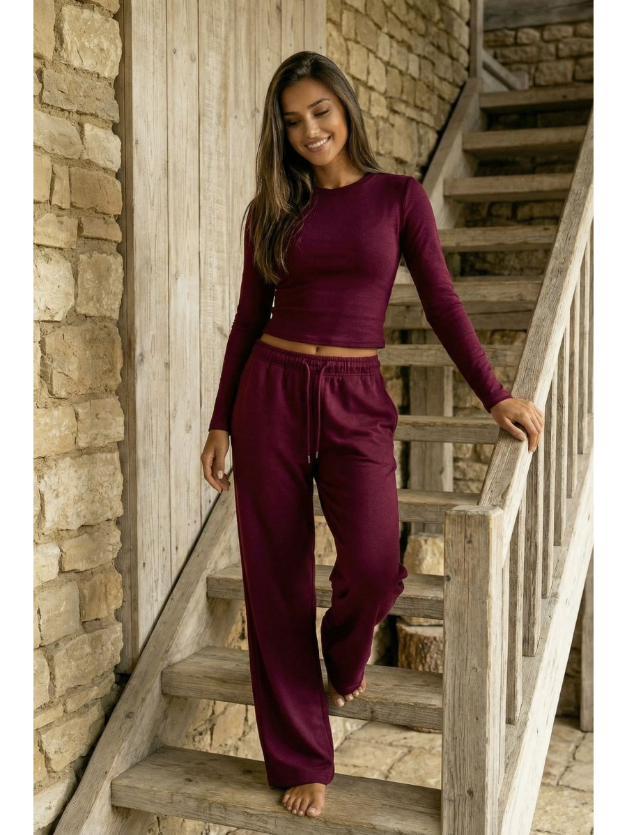Le pantalon ample assure une liberté de mouvement optimale, tandis que le haut ajusté met subtilement en valeur la silhouette de manière féminine.